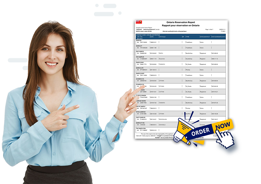 NUANS is a name search and reservation report provided by Government of Canada. It is required to register a business in either the federal or provincial jurisdictions.